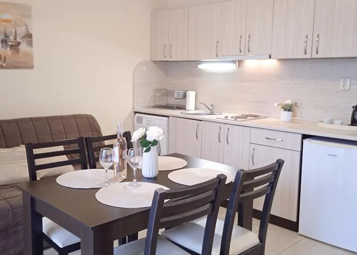 V apartmánu je kuchyně s chladničkou a plotnou, což mají hosté k dispozici. Autobusová zastávka Burgas Airport je vzdálena 500 metrů od ubytování. Terasa je skvělým místem k večeři a pití.